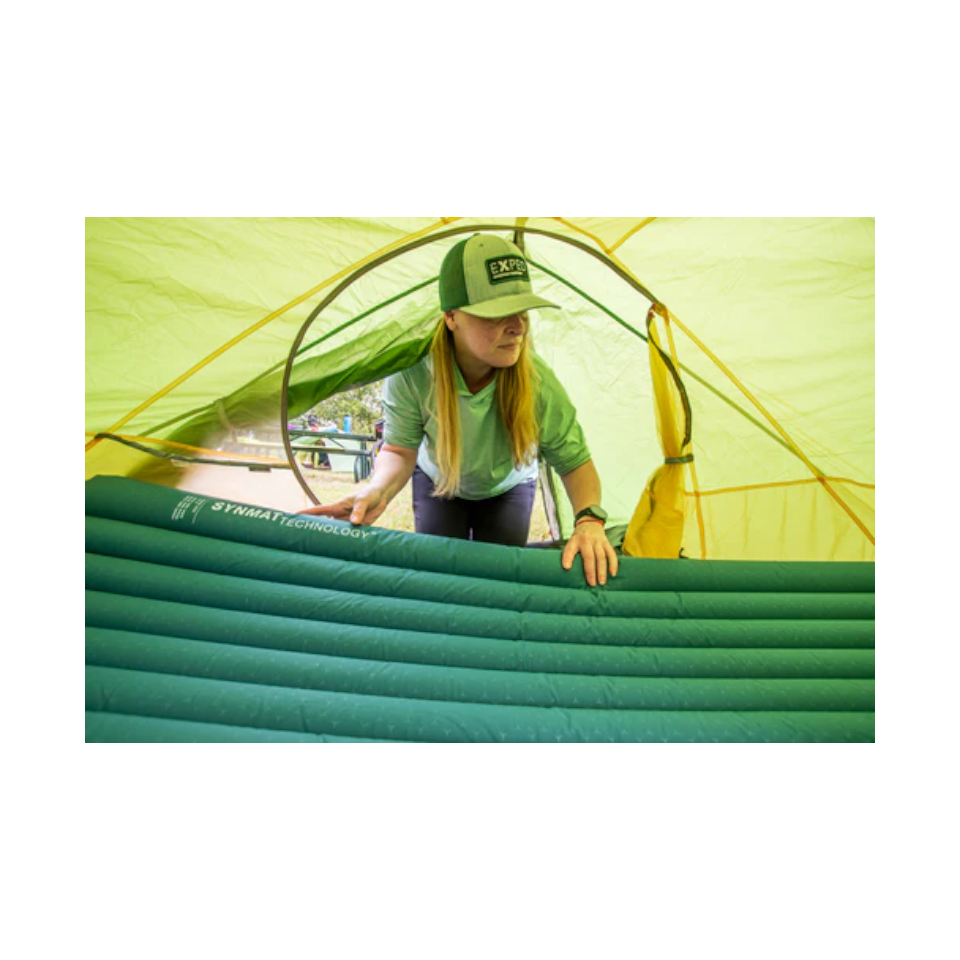 La tecnología SYNMAT TECHNOLOGY™ de EXPED, con nuestro aislamiento patentado Texpedloft, garantiza el máximo calor durante la vida útil de la colchoneta, mientras que un colchón de aire de 7 cm de espesor soporta tu cuerpo. Estas cámaras de aire recorren la colchoneta de pies a cabeza, brindando un soporte total al cuerpo para un descanso inigualable y una durabilidad máxima.